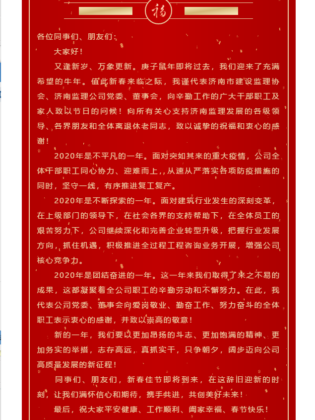 凝心聚力 逐夢(mèng)前行——濟(jì)南監(jiān)理黨委書記、董事長(zhǎng)林峰春節(jié)致辭