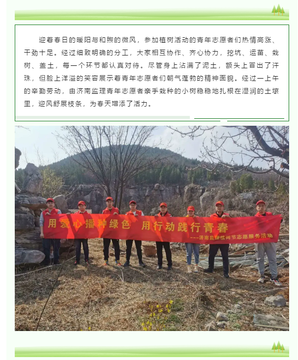 青春助力護(hù)生態(tài) 植樹(shù)造林展風(fēng)采——濟(jì)南監(jiān)理團(tuán)委組織植樹(shù)節(jié)志愿服務(wù)活動(dòng)
