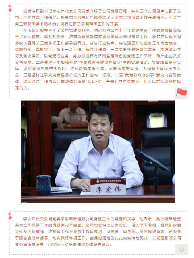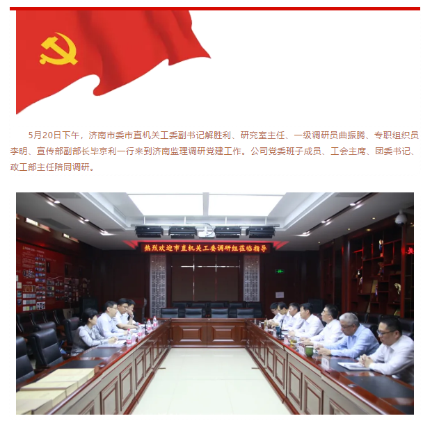 濟(jì)南市委市直機(jī)關(guān)工委調(diào)研組蒞臨濟(jì)南監(jiān)理指導(dǎo)黨建工作