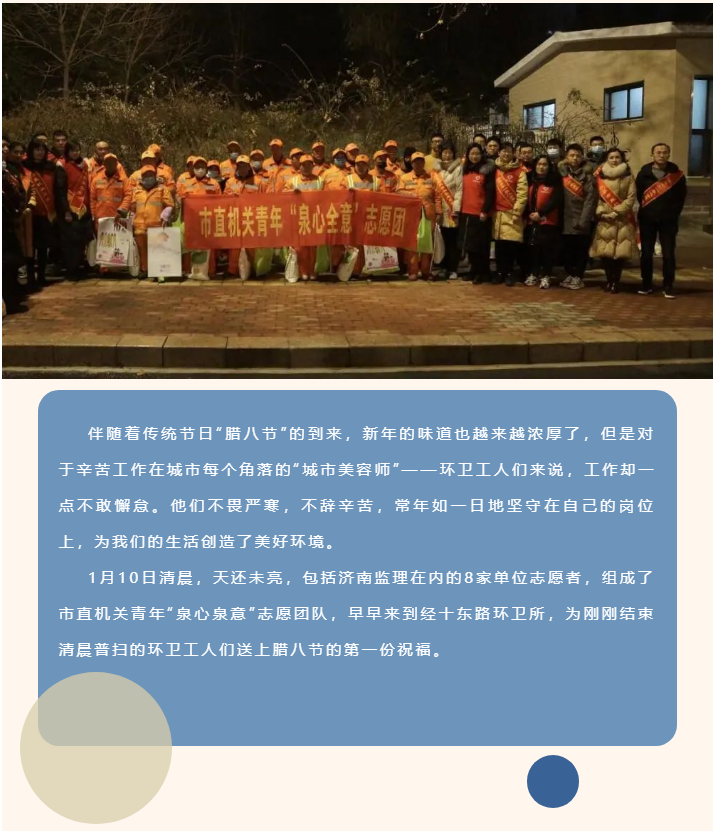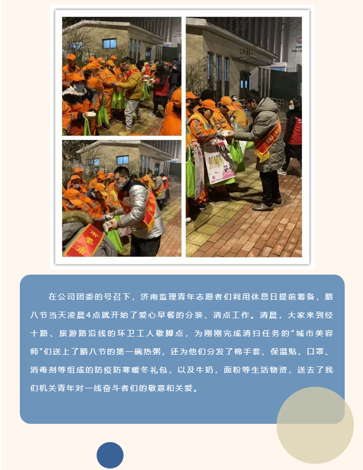 濟(jì)南監(jiān)理青年志愿者參加市直機(jī)關(guān)團(tuán)工委“泉心泉意”志愿團(tuán)暖冬行動