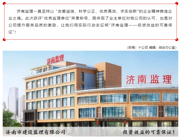 公司獲評濟南軌道交通集團建設(shè)投資有限公司2021年度“優(yōu)秀監(jiān)理單位”