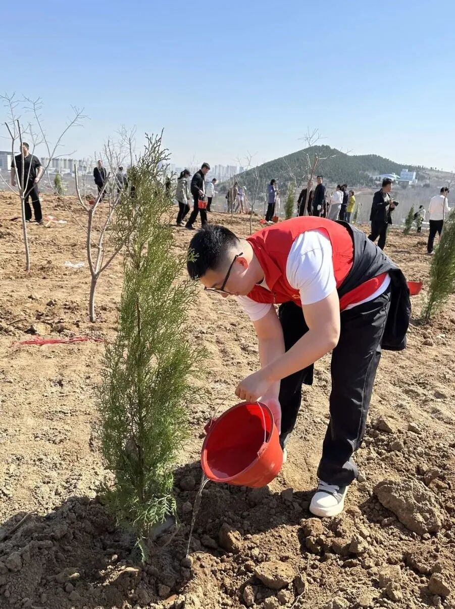 揮鍬鏟土、扶苗填坑、提水澆灌,每一步都一絲不茍。在明媚的春光下,大家齊心協(xié)力,種下一棵棵樹苗。這些樹苗承載著我們對綠色家園的美好期許,在未來將成長為守護泉城的綠色衛(wèi)士,為生態(tài)環(huán)境增添一抹新綠。